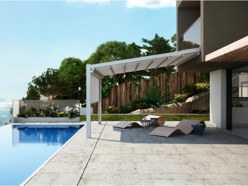 Élégants et sans âge : Meta et Fusion ce sont les pergolas caractérisées par le design minimal qui s’adaptent à tout contexte architectonique, pour une projection en plein air du living de la maison.