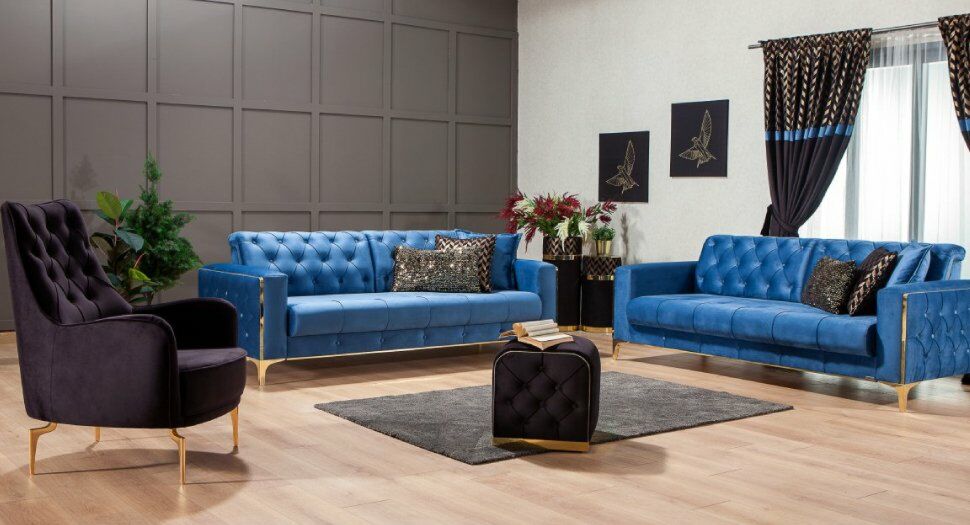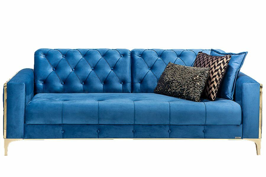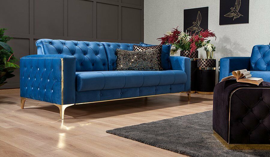 • En utilisant le détail d’aspect métal doré, qui est l’une des tendances de ces dernières années, sur les accoudoirs, la base et les pieds de l’ensemble de canapés Vivaldi, il fera de votre maison un lieu de luxe chaleureux, élégant et stylé.